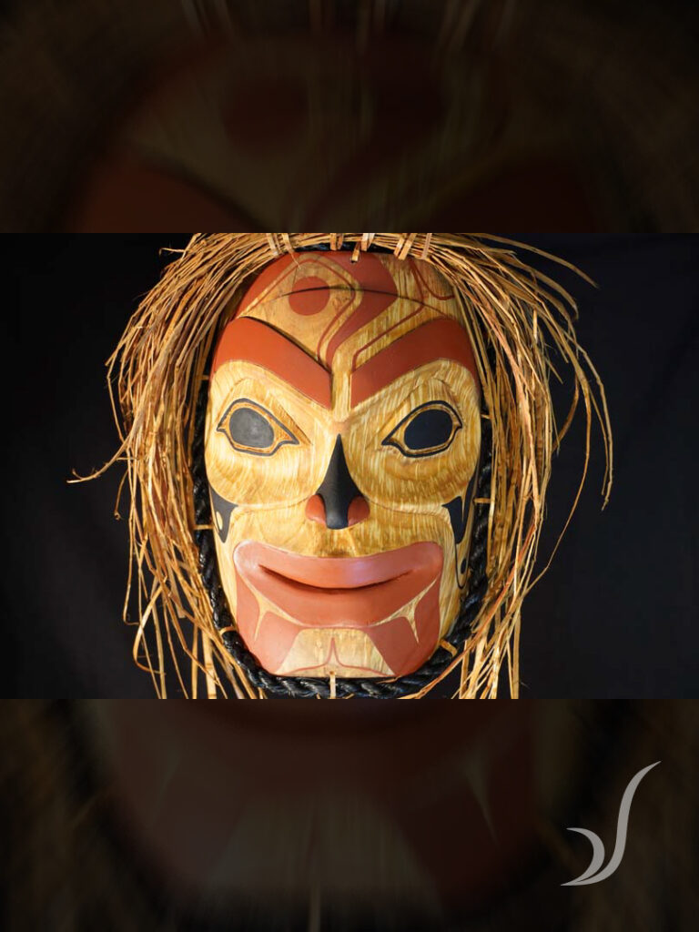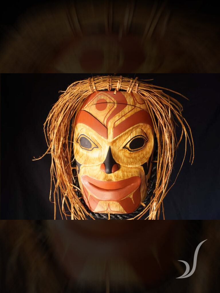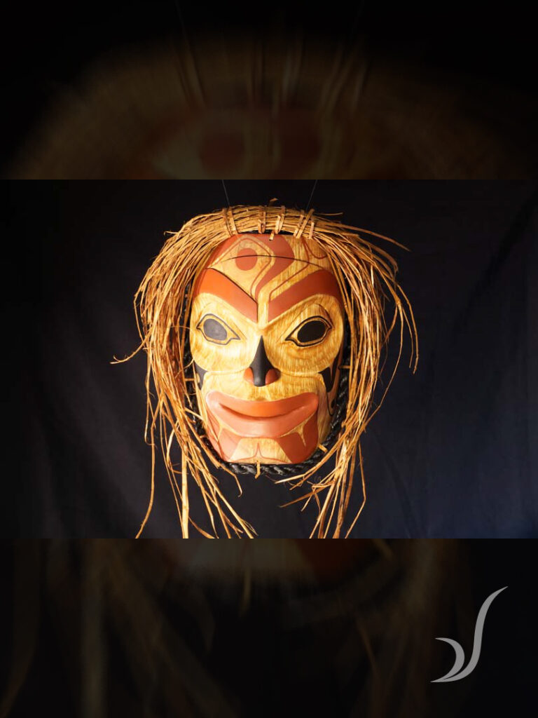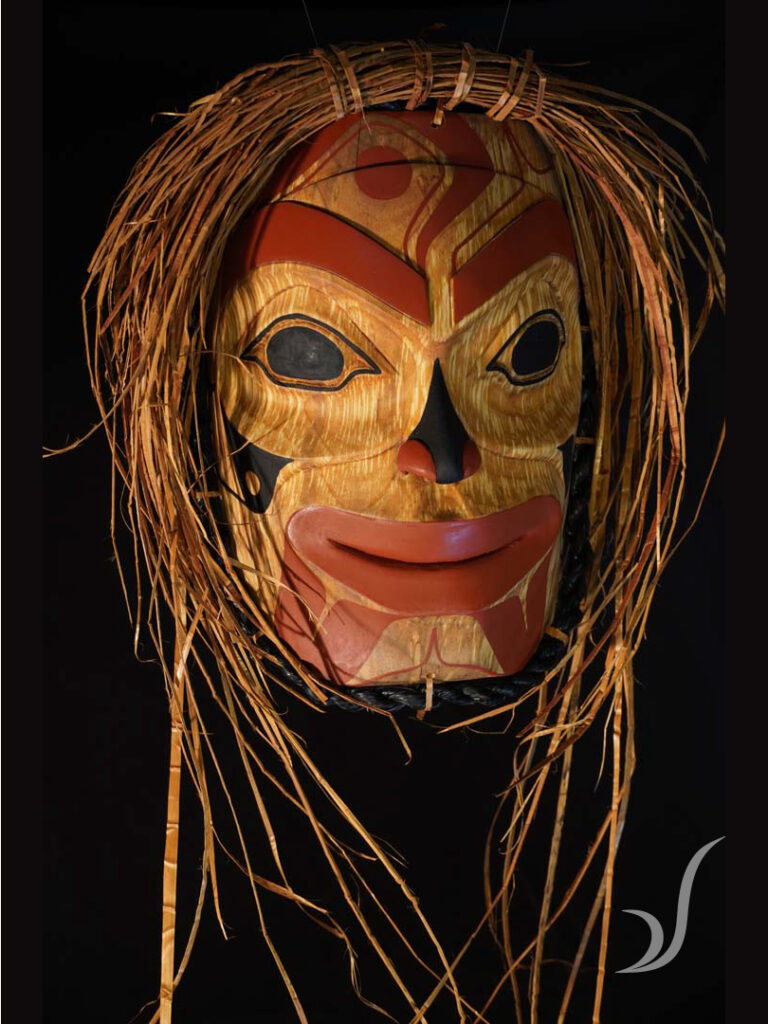 “Inspiration for this mask emerges from my appreciation of native women who I have observed as culture bearers and advocates for our native lands. Their work focuses on protecting our natural resources centered around the forests of Tlingit Aani (Tlingit land – Southeast Alaska)”